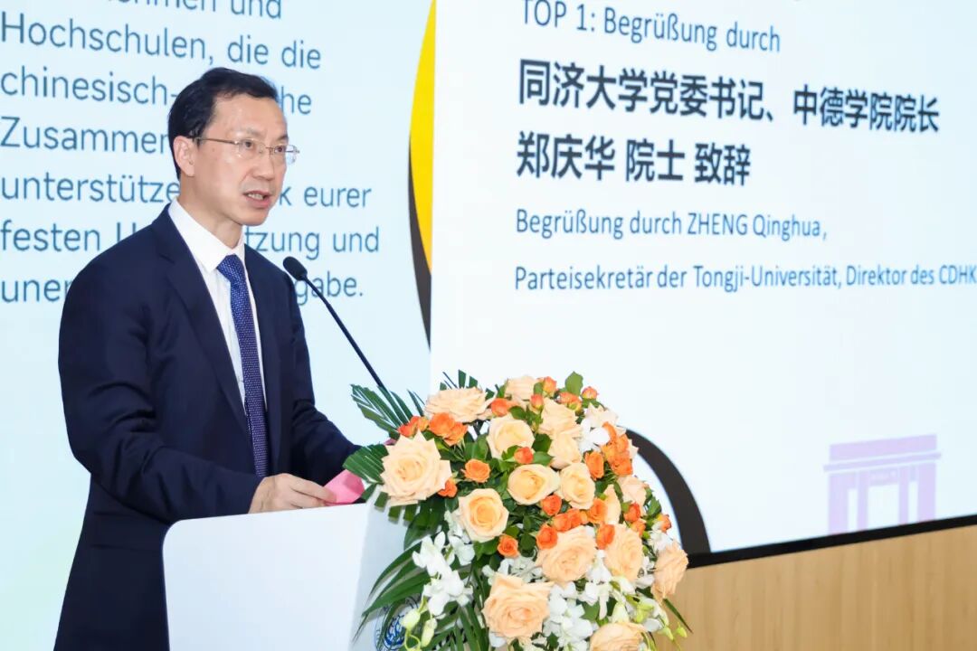 Prof. Dr. ZHENG Qinghua hob hervor, dass die Zusammenarbeit mit Deutschland ein wesentlicher Bestandteil und ein zentrales strategisches Fundament der Tongji-Universität sei. Seit der Gründung des CDHK vor 27 Jahren habe das Kolleg konsequent den Weg einer international orientierten, kooperativen Hochschulbildung sowie der engen Verknüpfung von Industrie, Wissenschaft, Forschung und Praxis verfolgt. Dabei habe es bemerkenswerte Erfolge in der gemeinsamen Ausbildung qualifizierter Fachkräfte, in der hochrangigen Forschungskooperation und in der Förderung des gegenseitigen Verständnisses im kulturellen Austausch zwischen China und Deutschland erzielt. Die Leistungen des CDHK seien von den Staatsführungen beider Länder anerkannt worden und hätten wesentlich zur Stärkung des internationalen Ansehens der Tongji-Universität beigetragen. Gegenwärtig treibe die Universität die Umsetzung des 15. Fünfjahresplans mit den Schwerpunkten „digitale Intelligenz, grüne Transformation und Integration“ aktiv voran und optimiere zugleich ihre Kooperationsmechanismen mit Deutschland.