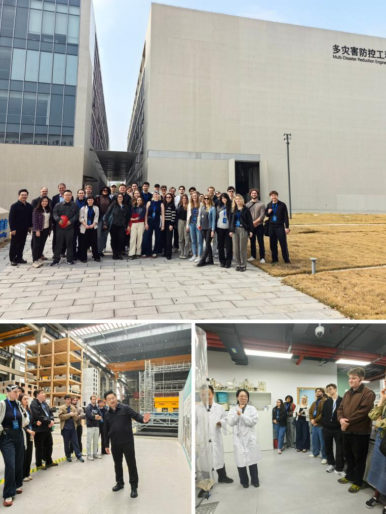 Im Laborteil besuchten die Studierenden das State Key Laboratory of Disaster Prevention and Mitigation in Civil Engineering, das Multi-Functional Shaking Table Laboratory sowie das State Key Laboratory of Pollution Control and Resource Recycling. Unter fachkundiger Anleitung von Prof. ZHANG Jiaolong und weiteren Mitarbeitenden erhielten sie Einblicke in Labormethoden zur Untersuchung des Verhaltens großer Strukturen wie Hochhäuser, Großbrücken und Langstreckentunnel unter Extrembedingungen, in die Funktionsweise eines Mehrpunkt-Rütteltisch-Prüfsystems sowie in experimentelle Anlagen für den Gewässer- und Umweltschutz. Dabei konnten sie sich einen Eindruck von der Arbeitsweise in der ingenieurwissenschaftlichen Forschung an der Tongji-Universität verschaffen.